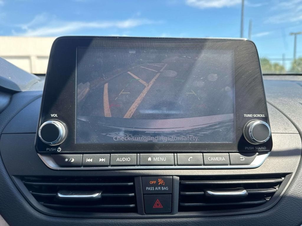 17 Machined Alloy Wheels, 4-Wheel Disc Brakes, 6 Speakers, ABS brakes, Air Conditioning, Alloy wheels, AM/FM radio: SiriusXM, Auto High-beam Headlights, Blind Spot Warning, Brake assist, Bumpers: body-color, Cloth Seat Trim, Delay-off headlights, Driver door bin, Driver vanity mirror, Dual front impact airbags, Dual front side impact airbags, Electronic Stability Control, Floor Mats/Trunk Mat/Hideaway Net, Four wheel independent suspension, Front anti-roll bar, Front Bucket Seats, Front Center Armrest, Front reading lights, Fully automatic headlights, Illuminated entry, Knee airbag, Low tire pressure warning, NissanConnect featuring Apple CarPlay and Android Auto, Occupant sensing airbag, Outside temperature display, Overhead airbag, Overhead console, Panic alarm, Passenger door bin, Passenger vanity mirror, Power door mirrors, Power driver seat, Power steering, Power windows, Radio data system, Radio: AM/FM Audio System, Rear anti-roll bar, Rear Parking Sensors, Rear reading lights, Rear seat center armrest, Rear side impact airbag, Rear window defroster, Remote keyless entry, Security system, Speed control, Speed-sensing steering, Speed-Sensitive Wipers, Split folding rear seat, Sport steering wheel, Steering wheel mounted audio controls, Tachometer, Telescoping steering wheel, Tilt steering wheel, Traction control, Trip computer, and Variably intermittent wipers.