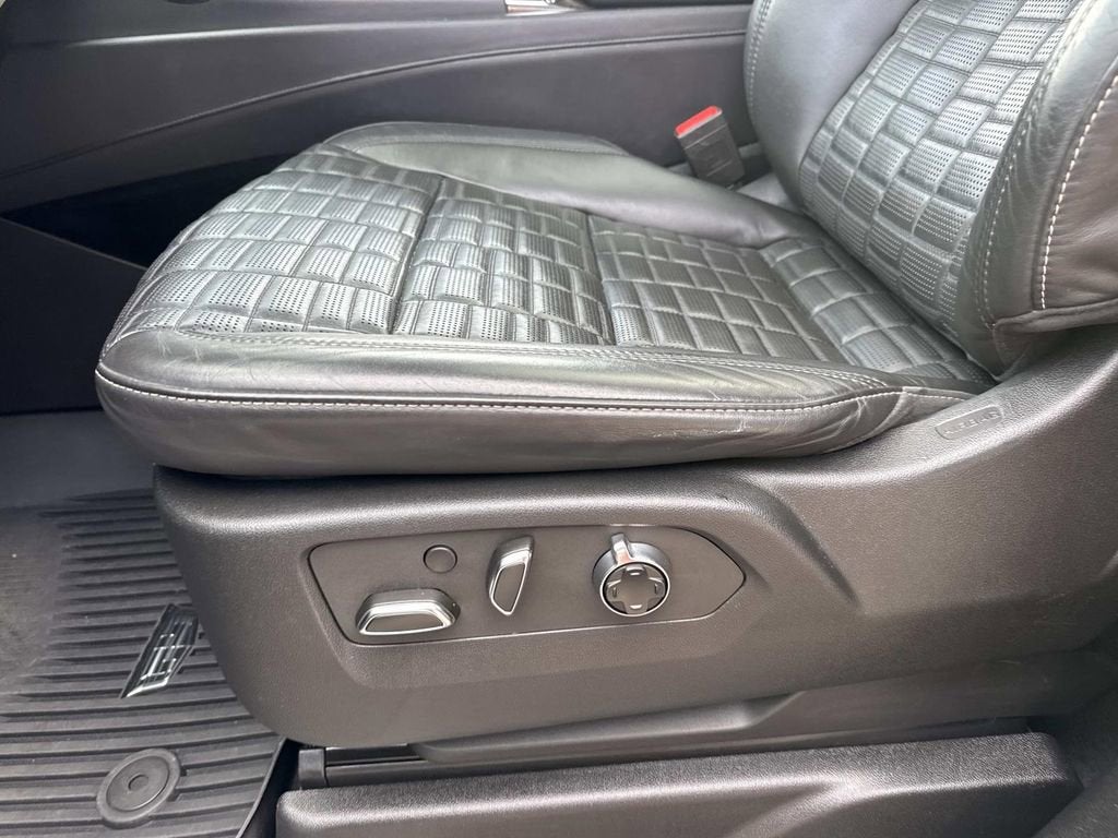 Heavy-Duty Trailering Package (Extra Capacity Cooling System, Trailer Tire Pressure Monitoring System, Trailering Assist Guidelines, and Wired Auxiliary Trailer Camera (LPO)), Preferred Equipment Group 1SH (Adaptive Cruise Control, AKG Studio Reference 36-Speaker Audio System, Automatic Seat Belt Tightening, Body-Color Door Handles, Door Lock & Latch Shields, Electronic Limited-Slip Differential, Enhanced Automatic Emergency Braking, Enhanced Automatic Parking Assist, Floor Console w/Covered Storage, Front Auxiliary 12-volt Power Outlet, Glass Breakage Sensor, Heated & Ventilated Driver & Front Passenger Seats, Hitch Guidance w/Hitch View, Integrated Trailer Brake Controller, Platinum Interior Trim, Power Lumbar Massage Driver Seat, Power Lumbar Massage Front Passenger Seat, Power Panoramic Tilt-Sliding Sunroof, Rear Camera Mirror, Rear Camera Mirror Washer, Rear Cross Traffic Alert, Rear Seat Entertainment System, Reconfigurable Full-Color Head-Up Display, Reverse Automatic Braking, Running Board Assist Steps, Smart Trailer Integration Indicator, Theft-Deterrent Alarm System, Trailer Side Blind Zone Alert, Vehicle Inclination Sensor, and Vehicle Interior Movement Sensor), Touring Package (Air Ride Adaptive Suspension, Illuminating Front & Rear Sill Plates, and Soft Closing Front & Rear Doors), 16.9 Diagonal OLED Infotainment Screen, 2-Presets Memory For Driver Seat Adjuster, 3 Years of OnStar & Connected Services Plan, 3.23 Axle Ratio, 3rd row seats: split-bench, 4-Way Power Driver Lumbar Seat Adjuster, 4-Way Power Front Passenger Lumbar Seat Adjuster, 4-Wheel Disc Brakes, 8-Way Power Driver Seat Adjuster, 8-Way Power Front Passenger Seat Adjuster, A/V remote, ABS brakes, Adaptive suspension, Air Conditioning, Alloy wheels, AM/FM radio: SiriusXM with 360L, Apple CarPlay/Android Auto, Audio memory, Auto High-beam Headlights, Auto tilt-away steering wheel, Auto-dimming door mirrors, Auto-dimming Rear-View mirror, Automatic temperature control, Brake assist, Bumpers: body-color, Compass, Cooled Console w/Covered Storage, Delay-off headlights, Door auto-latch, Driver door bin, Driver vanity mirror, Dual front impact airbags, Dual front side impact airbags, Electronic Stability Control, Emergency communication system: OnStar and Cadillac connected services capable, Exterior Parking Camera Rear, Four wheel independent suspension, Front anti-roll bar, Front Bucket Seats, Front Center Armrest w/Storage, Front dual zone A/C, Front reading lights, Full Semi-Aniline Leather Seat Trim, Fully automatic headlights, Garage door transmitter, Genuine wood console insert, Genuine wood dashboard insert, Genuine wood door panel insert, HD Radio, Headphones, Heads-Up Display, Heated door mirrors, Heated Driver & Front Passenger Seats, Heated front seats, Heated rear seats, Heated steering wheel, Highway Safety Kit, Illuminated entry, Leather steering wheel, Low tire pressure warning, Magnetic Ride Control Suspension,