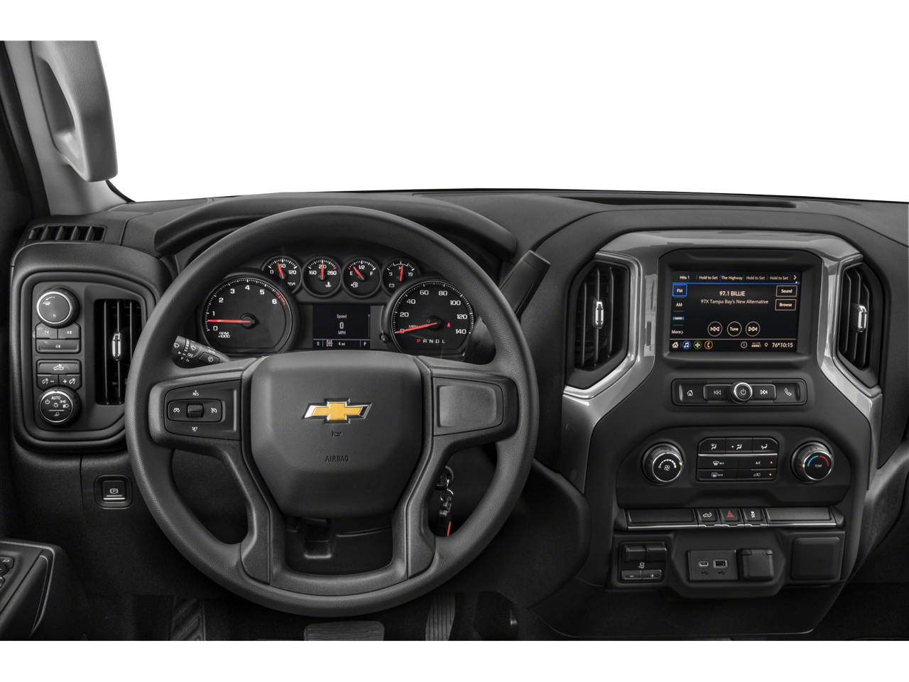 Cloth Rear Seat w/Storage Package, Custom Convenience Package (Electric Rear-Window Defogger, EZ Lift Power Lock & Release Tailgate, Integrated Trailer Brake Controller, LED Cargo Area Lighting, and Remote Vehicle Starter System), Custom Value Package (Auto-Dimming Inside Rear-View Mirror and Power-Adjustable Vertical Trailering Mirrors), Gooseneck/5th Wheel Package (Black Chevytec Spray-On Bedliner), Gooseneck/5th Wheel Prep Package, Infotainment Package (Chevrolet Connected Access Capable, Compass, OnStar & Chevrolet Connected Services Capable, SiriusXM Radio, and Wi-Fi Hotspot Capable), Preferred Equipment Group 1CX (170 Amp Alternator, 2-Speed Electronic Shift Transfer Case, 3.5 Diagonal Monochromatic Display DIC, Black Mirror Caps, Bluetooth® For Phone, Body Color Front Grille, Color-Keyed Carpeting Floor Covering, Deep-Tinted Glass, Electronic Cruise Control w/Set & Resume Speed, Front Rubberized Vinyl Floor Mats, Heated Vertical Trailering Mirrors, Locking Tailgate, Manual Tailgate Function w/No EZ Lift, Manual Tilt-Wheel Steering Column, Power Door Locks, Power Front Windows w/Driver Express Up/Down, Power Front Windows w/Passenger Express Down, Power Rear Windows w/Express Down, Rear 60/40 Folding Bench Seat (Folds Up), Rear Rubberized Vinyl Floor Mats, Remote Keyless Entry, and Standard Tailgate), Suspension Package, 3.73 Rear Axle Ratio, 4-Wheel Disc Brakes, 6 Speakers, 6-Speaker Audio System, 720 Cold-Cranking Amps Heavy-Duty Battery, ABS brakes, Air Conditioning, All-Weather Floor Liners (LPO), Alloy wheels, AM/FM radio, Apple CarPlay/Android Auto, Brake assist, Cloth Seat Trim, Delay-off headlights, Driver door bin, Dual front impact airbags, Dual front side impact airbags, Electronic Stability Control, Front 40/20/40 Split-Bench Seats, Front anti-roll bar, Front Center Armrest w/Storage, Front reading lights, Front wheel independent suspension, Fully automatic headlights, Heated door mirrors, Illuminated entry, LED Smoked Amber Roof Marker Lamps, Low tire pressure warning, Occupant sensing airbag, Outside temperature display, Overhead airbag, Overhead console, Panic alarm, Passenger door bin, Passenger vanity mirror, Power door mirrors, Power steering, Power windows, Premium audio system: Chevrolet Infotainment 3, Radio: Chevrolet Infotainment 3 System, Rear reading lights, Rear step bumper, Remote keyless entry, Speed control, Split folding rear seat, Tachometer, Tilt steering wheel, Traction control, Trip computer, Turn signal indicator mirrors, Upfitter Switch Kit (5), Variably intermittent wipers, Voltmeter, and Wheels: 20 10-Spoke Machined Aluminum.