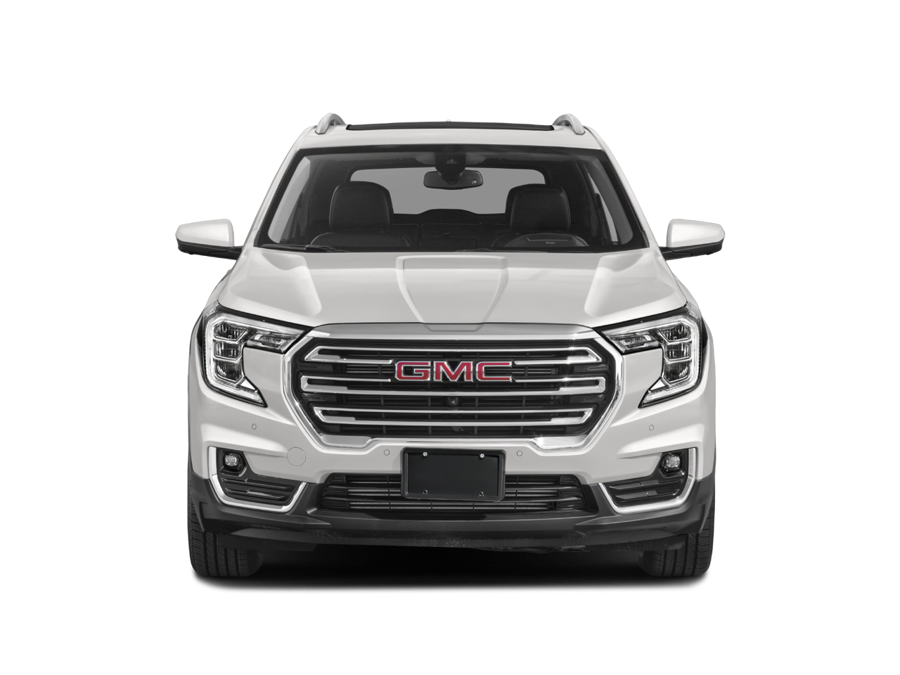 License Plate Front Mounting Package, Preferred Equipment Group 4SA, Terrain Pro Safety Plus (Adaptive Cruise Control, Rear Park Assist, and Safety Alert Seat), 2 USB Data Ports, 2 USB Data Ports w/SD Card Reader, 3.47 Axle Ratio, 4-Wheel Disc Brakes, 6 Speakers, 6-Speaker Audio System Feature, 6-Way Power Front Passenger Seat, 8-Way Power Driver Seat Adjuster, ABS brakes, Air Conditioning, Alloy wheels, AM/FM radio: SiriusXM, Auto High-beam Headlights, Auto-dimming Rear-View mirror, Automatic temperature control, Bluetooth® For Phone, Brake assist, Bumpers: body-color, Compass, Delay-off headlights, Deleted 3 Years of OnStar & Connected Services Plan, Driver & Front Passenger Heated Seats, Driver door bin, Driver vanity mirror, Dual front impact airbags, Dual front side impact airbags, Electronic Stability Control, Emergency communication system: OnStar and GMC connected services capable, Four wheel independent suspension, Front anti-roll bar, Front Bucket Seats, Front Center Armrest, Front dual zone A/C, Front fog lights, Front Passenger 2-Way Power Lumbar, Front reading lights, Fully automatic headlights, Garage door transmitter, Heated door mirrors, Heated front seats, Heated steering wheel, Illuminated entry, Lane Change Alert w/Side Blind Zone Alert, Low tire pressure warning, Memory seat, Occupant sensing airbag, Outside temperature display, Overhead airbag, Overhead console, Panic alarm, Passenger door bin, Passenger vanity mirror, Perforated Leather-Appointed Seat Trim, Power door mirrors, Power Driver Lumbar Control, Power driver seat, Power Liftgate, Power passenger seat, Power steering, Power windows, Radio data system, Radio: GMC Infotainment Audio System w/8 Display, Rear anti-roll bar, Rear Cross-Traffic Alert, Rear seat center armrest, Rear window defroster, Rear window wiper, Remote keyless entry, Roof rack: rails only, Security system, SiriusXM Radio, Speed control, Speed-sensing steering, Split folding rear seat, Spoiler, Steering wheel mounted audio controls, Tachometer, Telescoping steering wheel, Tilt steering wheel, Traction control, Trip computer, Turn signal indicator mirrors, Variably intermittent wipers, Wheels: 18 x 7 Silver Painted Aluminum, and Wireless Apple CarPlay/Wireless Android Auto.