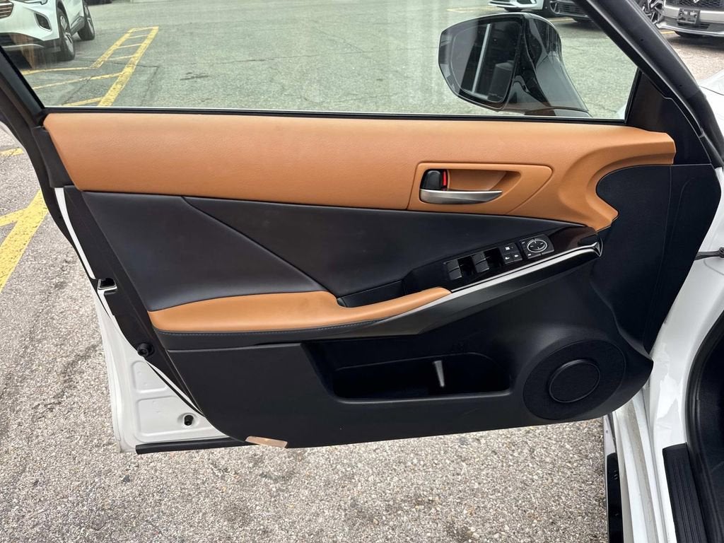 ABS brakes, Active Cruise Control, Alloy wheels, Compass, Electronic Stability Control, Front dual zone A/C, Heated door mirrors, Heated front seats, Illuminated entry, Low tire pressure warning, Remote keyless entry, Traction control, 10 Speakers, 19 Wheels, 4-Wheel Disc Brakes, Air Conditioning, AM/FM radio: SiriusXM, Apple CarPlay/Android Auto, Auto High-beam Headlights, Auto-dimming door mirrors, Auto-dimming Rear-View mirror, Automatic temperature control, Brake assist, Bumpers: body-color, CD player, Delay-off headlights, Driver door bin, Driver vanity mirror, Dual front impact airbags, Dual front side impact airbags, Emergency communication system: Safety Connect (3-year trial), Exterior Parking Camera Rear, Four wheel independent suspension, Front anti-roll bar, Front Bucket Seats, Front Center Armrest, Front fog lights, Front reading lights, Fully automatic headlights, Garage door transmitter: HomeLink, Heated & Ventilated F SPORT Seats, Heated steering wheel, Knee airbag, Leather Shift Knob, Leather steering wheel, Occupant sensing airbag, Outside temperature display, Overhead airbag, Overhead console, Panic alarm, Passenger door bin, Passenger vanity mirror, Perforated NuLuxe Seat Trim, Power door mirrors, Power driver seat, Power passenger seat, Power steering, Power windows, Radio data system, Radio: Multimedia System w/8 Color Touchscreen, Rain sensing wipers, Rear anti-roll bar, Rear reading lights, Rear seat center armrest, Rear side impact airbag, Rear window defroster, Security system, Speed control, Speed-sensing steering, Speed-Sensitive Wipers, Split folding rear seat, Spoiler, Sport steering wheel, Steering wheel mounted audio controls, Tachometer, Telescoping steering wheel, Tilt steering wheel, Trip computer, Turn signal indicator mirrors, Variably intermittent wipers, and Ventilated front seats.