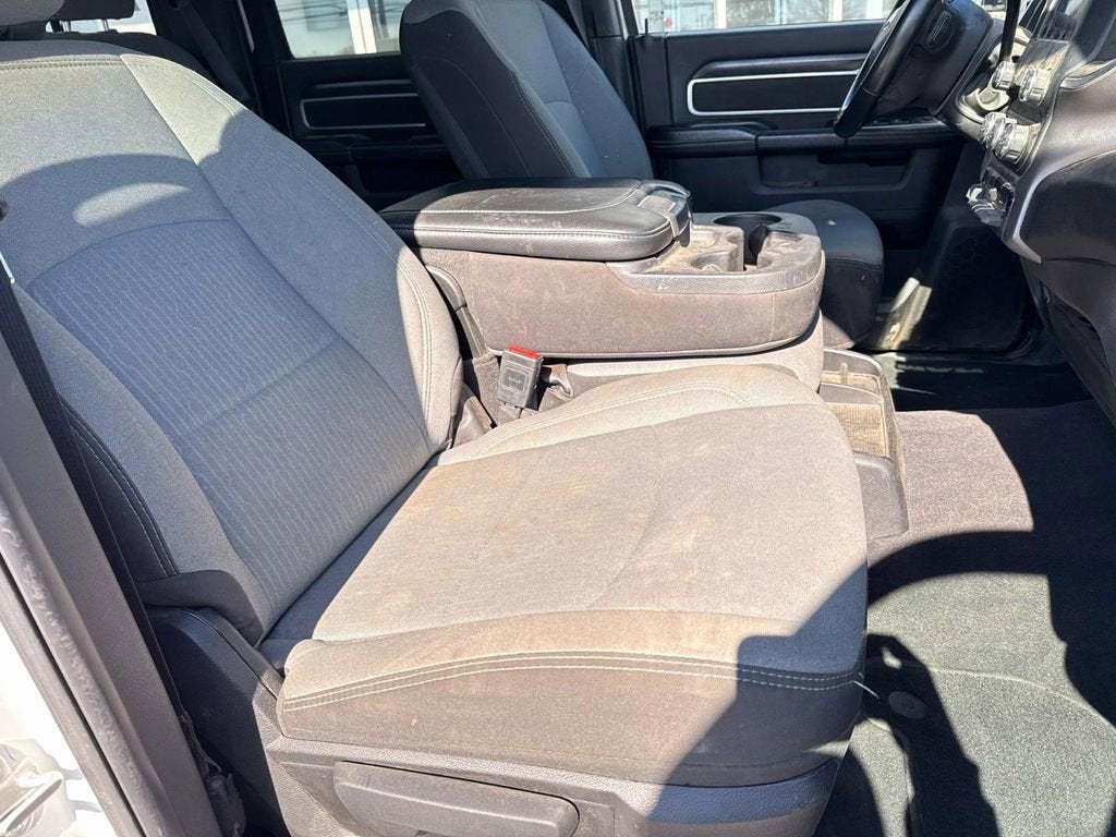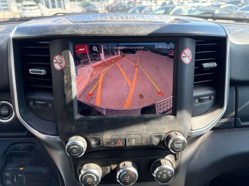 Level 1 Equipment Group (2 Way Rear Headrest Seat, 2nd Row In Floor Storage Bins, 4 Way Front Headrests, 40/20/40 Split Bench Seat, 4G LTE Wi-Fi Hot Spot, 8.4 Touchscreen Display, Apple CarPlay, Auto Power-Folding Mirrors, Big Horn IP Badge, Black Exterior Mirrors, Bluetooth® Handsfree Phone & Audio, Center Hub, Connectivity - US/Canada, Dual Glove Boxes, Exterior Mirrors Courtesy Lamps, Exterior Mirrors w/Heating Element, Exterior Mirrors w/Supplemental Signals, Foam Bottle Insert (Door Trim Panel), Footwell Courtesy Lamp, For Details, Visit DriveUconnect.com, For More Info, Call 800-643-2112, Forward & Reverse Utility Lights, Front Armrest w/Cupholders, Front Center Seat Cushion Storage, Front Fog Lamps, Front Seat Back Map Pockets, Global Telematics Box Module (TBM), Glove Box Lamp, Google Android Auto, GPS Antenna Input, Integrated Center Stack Radio, Integrated Voice Command w/Bluetooth®, Leather Wrapped Steering Wheel, Locking Lower Glove Box, Manual Adjust 4-Way Front Passenger Seat, Mirror Running Lights, Power 2-Way Driver Lumbar Adjust, Power Adjust 8-Way Driver Seat, Power Adjust Mirrors, Power Adjustable Convex Aux Mirrors, Power Heated Fold Telescope Mirrors, Power Telescoping Mirrors, Rear 60/40 Folding Seat, Rear Dome w/On/Off Switch Lamp, Remote USB Port - Charge Only, Selectable Tire Fill Alert, SiriusXM Radio Service, SiriusXM Satellite Radio, Steering Wheel Mounted Audio Controls, Storage Tray, and Wheels: 18 x 8.0 Polished Aluminum), Quick Order Package 2HZ Big Horn, 3.73 Axle Ratio, 4-Wheel Disc Brakes, 6 Speakers, ABS brakes, Active Noise Control System, Air Conditioning, Brake assist, Bumpers: chrome, Center Stack Storage Drawer, Chrome Flat Cab-Length Side Steps, Cloth 40/20/40 Bench Seat, Compass, Delay-off headlights, Driver door bin, Dual front impact airbags, Dual front side impact airbags, Electronic Stability Control, Electronically Controlled Throttle, Emergency communication system: SiriusXM Guardian, Front anti-roll bar, Front Center Armrest w/Storage, Front License Plate Bracket, Front reading lights, Fully automatic headlights, Heated door mirrors, Illuminated entry, Low tire pressure warning, Manual Adjust 4-Way Driver Seat, Manufacturer's Statement of Origin, Occupant sensing airbag, Outside temperature display, Overhead airbag, Overhead console, Panic alarm, ParkView Rear Back-Up Camera, Passenger door bin, Passenger vanity mirror, Power door mirrors, Power steering, Power windows, Premium Cloth 40/20/40 Bench Seat (DISC), Radio data system, Radio: Uconnect 3 w/5 Display, Radio: Uconnect 5 W w/8.4 Display, Rear anti-roll bar, Rear Folding Seat, Rear seat center armrest, Rear step bumper, Remote keyless entry, Speed control, Tachometer, Tilt steering wheel, Tip Start, Tow Hooks, Traction control, Trip computer, Turn signal indicator mirrors, Variably intermittent wipers, Voltmeter, and Wheels: 18 x 8.0 Steel Chrome ClaD.