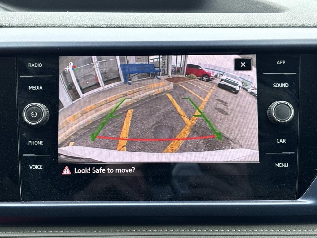 3.23 Axle Ratio, 4-Wheel Disc Brakes, 6 Speakers, ABS brakes, Active Blind Spot Monitor, Air Conditioning, Alloy wheels, AM/FM radio: SiriusXM with 360L, Auto High-beam Headlights, Automatic temperature control, Brake assist, Bumpers: body-color, CloudTex & Cloth Seating Surfaces, Compass, Delay-off headlights, Driver door bin, Driver vanity mirror, Dual front impact airbags, Dual front side impact airbags, Electronic Stability Control, Emergency communication system: VW Car-Net Safe & Secure 5-year, Exterior Parking Camera Rear, Front anti-roll bar, Front Bucket Seats, Front Center Armrest, Front dual zone A/C, Front reading lights, Front Strut Rear Torsion Beam Suspension, Front wheel independent suspension, Fully automatic headlights, Heated door mirrors, Heated Front Bucket Seats, Heated front seats, Heated steering wheel, Illuminated entry, Leather Shift Knob, Low tire pressure warning, Occupant sensing airbag, Outside temperature display, Overhead airbag, Overhead console, Panic alarm, Passenger door bin, Passenger vanity mirror, Power door mirrors, Power driver seat, Power steering, Power windows, Radio data system, Radio: MIB3 Composition Media AM/FM/HD, Rain sensing wipers, Rear anti-roll bar, Rear seat center armrest, Rear window defroster, Rear window wiper, Remote keyless entry, Roof rack: rails only, Security system, Speed control, Speed-sensing steering, Split folding rear seat, Spoiler, Steering wheel mounted audio controls, Tachometer, Telescoping steering wheel, Tilt steering wheel, Traction control, Trip computer, Variably intermittent wipers, and Wheels: 18 2-Tone Machined Alloy.